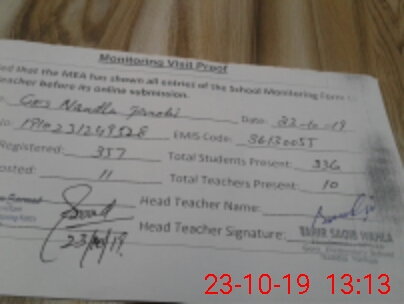 | Attendance Register | Head Teacher | MEA with School | Visit Proof |