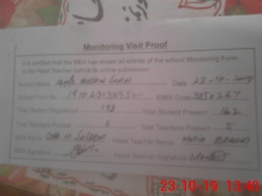 | EMIS Code: 31150267 | Name of School: GMPS HUSSAIN SHAH | |||