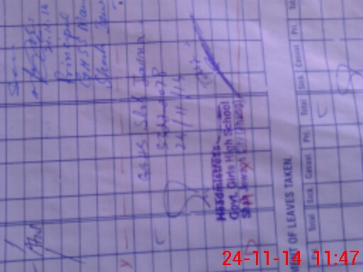 | Monitoring Date: 24-11-2014 | Start Time: 24-11-2014 11:19 AM | End Time: 24-11-2014 11:52 AM | Name of MEA: TE**** KH**** MA**** (R**** 04**** | |