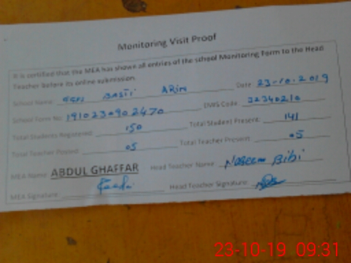 | EMIS Code: 32340210 | Name of School: GGPS BASTI ARAIN | |||