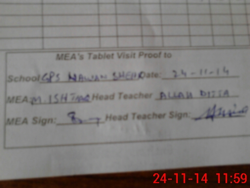 | Attendance Register | Head Teacher | MEA with School | Visit Proof |