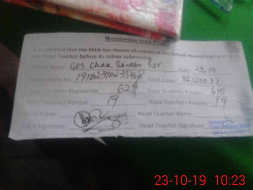 | EMIS Code: 36120032 | Name of School: GHS CHAK SARDAR PUR SHUJABAD | |||
