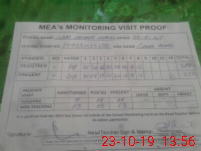 | Attendance Register | Head Teacher | MEA with School | Visit Proof |
