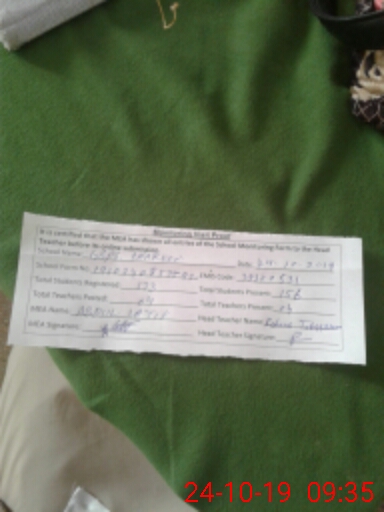 | Name: Na**** Am**** Sa**** Designation: (School Headmaster's/Headmistress's) PST Phone/Cell Number: 03**** |