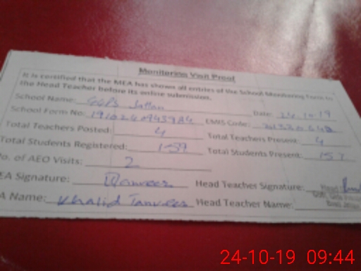 | Certified that this School was Inspected by the Undersigned MEA/DMO Today and the Information Stated Above is as Per Record. | |||||