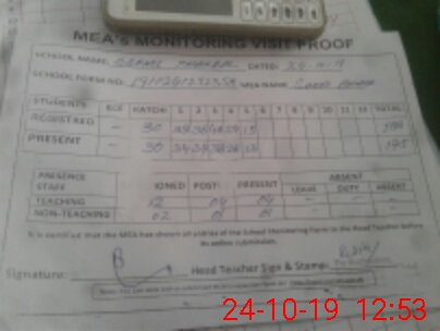 | Attendance Register | Head Teacher | MEA with School | Visit Proof |