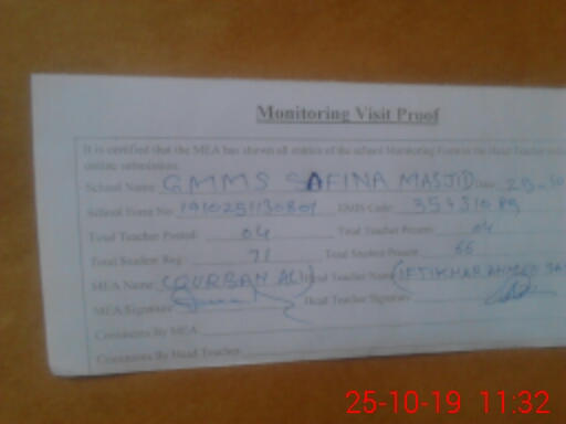 | EMIS Code: 35431089 | Name of School: GMMS SAFINA MASJID BHIKHI | |||