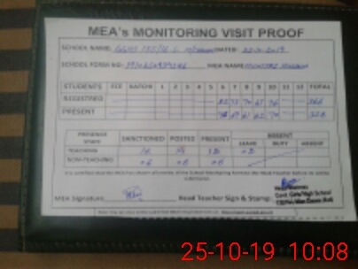 | Certified that this School was Inspected by the Undersigned MEA/DMO Today and the Information Stated Above is as Per Record. | |||||