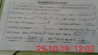 | Monitoring Date: 25-10-2019 | Start Time: 25-10-2019 11:19 AM | End Time: 25-10-2019 12:03 PM | Name of MEA: Li**** Al**** BN**** 11 | |