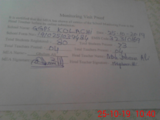 | EMIS Code: 32310169 | Name of School: GGPS KOLACHI | |||