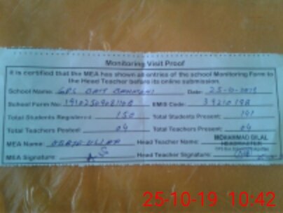 | Certified that this School was Inspected by the Undersigned MEA/DMO Today and the Information Stated Above is as Per Record. | |||||