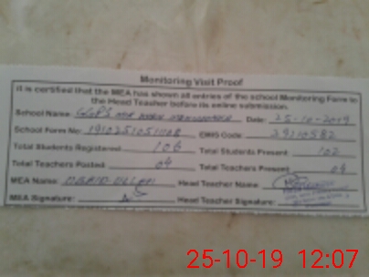 | Certified that this School was Inspected by the Undersigned MEA/DMO Today and the Information Stated Above is as Per Record. | |||||