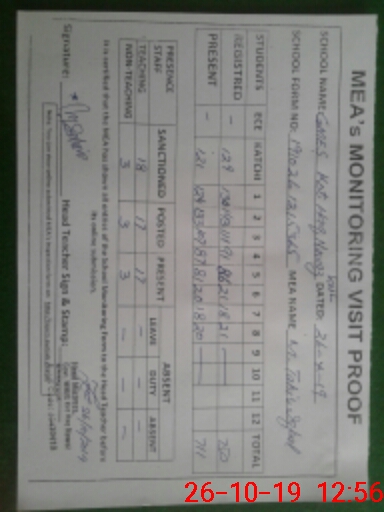 | Certified that this School was Inspected by the Undersigned MEA/DMO Today and the Information Stated Above is as Per Record. | |||||