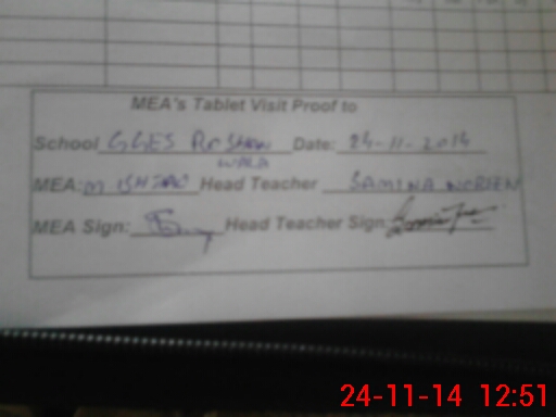 | Attendance Register | Head Teacher | MEA with School | Visit Proof |