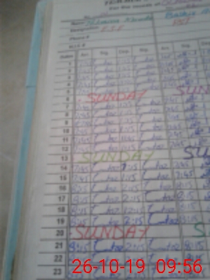 | CNIC | Full Name | Designation | R/C | Absence During Last Calender Month |