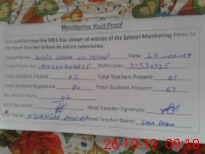 | Certified that this School was Inspected by the Undersigned MEA/DMO Today and the Information Stated Above is as Per Record. | |||||