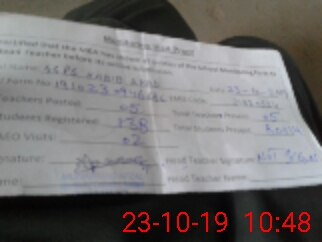 | Certified that this School was Inspected by the Undersigned MEA/DMO Today and the Information Stated Above is as Per Record. | |||||