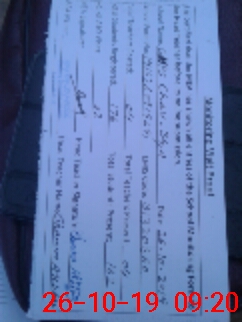| Remarks (Use Separate Page if Required): Last amount of NSB fund received Rs 33575 on 03 10 2019 | |||||