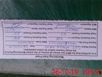 | Monitoring Date: 26-10-2019 | Start Time: 26-10-2019 08:57 AM | End Time: 26-10-2019 10:19 AM | Name of MEA: MU**** HA**** | |