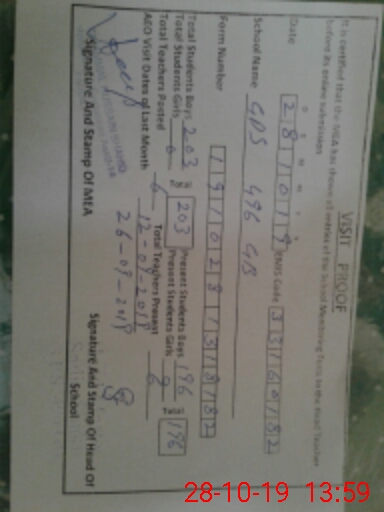 | Certified that this School was Inspected by the Undersigned MEA/DMO Today and the Information Stated Above is as Per Record. | |||||