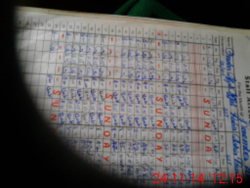 | CNIC | Full Name | Designation | R/C | Absence During Last Calender Month |