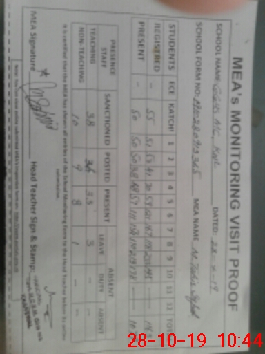 | Monitoring Date: 28-10-2019 | Start Time: 28-10-2019 09:13 AM | End Time: 28-10-2019 10:44 AM | Name of MEA: M.Ta**** Iq**** (S**** | |