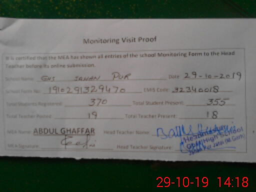 | EMIS Code: 32340018 | Name of School: GHS JAHAN PUR | |||