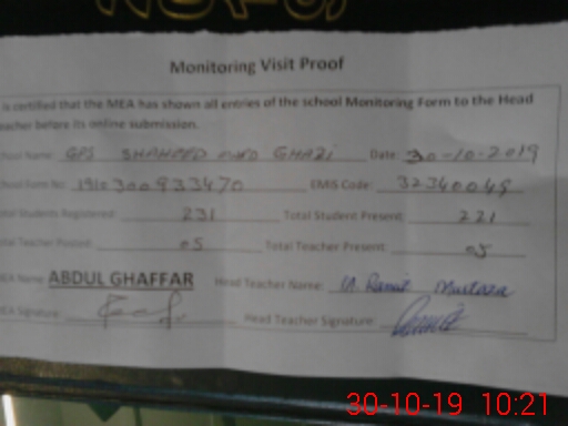 | EMIS Code: 32340049 | Name of School: GPS SHAHEED MARD GHAZI | |||