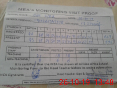 | Attendance Register | Head Teacher | MEA with School | Visit Proof |