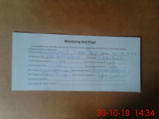 | Attendance Register | Head Teacher | MEA with School | Visit Proof |