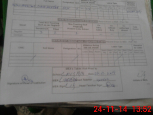 | Attendance Register | Head Teacher | MEA with School | Visit Proof |