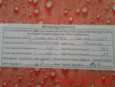 | Attendance Register | Head Teacher | MEA with School | Visit Proof |