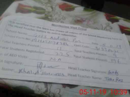| EMIS Code: 31330021 | Name of School: GHS ABDULLAH PUR BASTI ISMAIL | |||