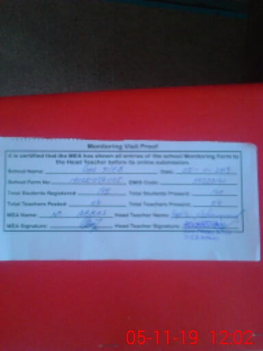 | Attendance Register | Head Teacher | MEA with School | Visit Proof |
