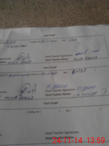 | Attendance Register | Head Teacher | MEA with School | Visit Proof |