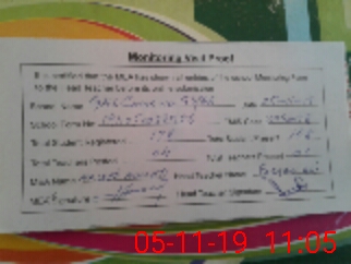 | Monitoring Date: 05-11-2019 | Start Time: 05-11-2019 10:38 AM | End Time: 05-11-2019 11:05 AM | Name of MEA: NA**** AH**** BN**** | |