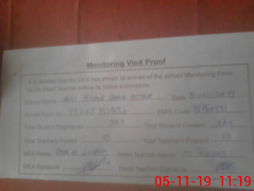 | Certified that this School was Inspected by the Undersigned MEA/DMO Today and the Information Stated Above is as Per Record. | |||||