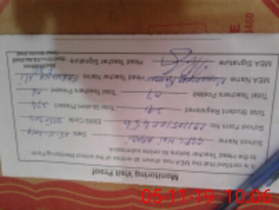 | Certified that this School was Inspected by the Undersigned MEA/DMO Today and the Information Stated Above is as Per Record. | |||||