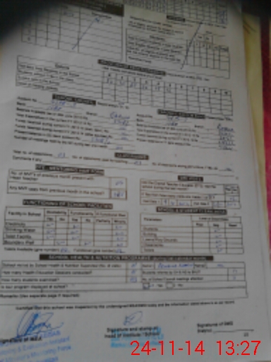 | School Visited by School Health & Nutrition Supervisor (No. of Visits) | 1 | Name1: | REHANA SHARIF | Name2: | NIL |