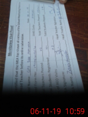 | Certified that this School was Inspected by the Undersigned MEA/DMO Today and the Information Stated Above is as Per Record. | |||||