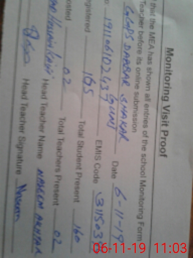 | Certified that this School was Inspected by the Undersigned MEA/DMO Today and the Information Stated Above is as Per Record. | |||||