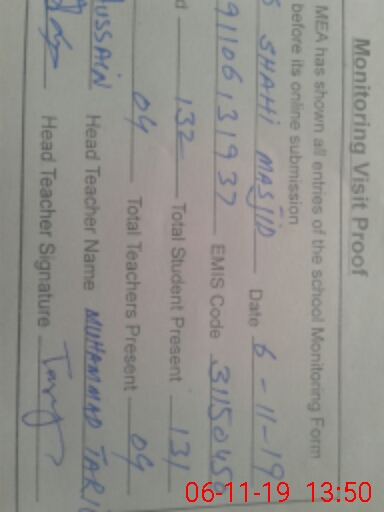 | EMIS Code: 31150450 | Name of School: GPS MASJID SHAHI MASHID | |||