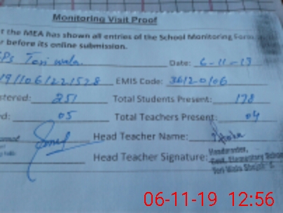 | Attendance Register | Head Teacher | MEA with School | Visit Proof |