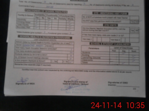 | Certified that this School was Inspected by the Undersigned MEA/DMO Today and the Information Stated Above is as Per Record. | |||||