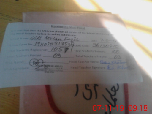 | EMIS Code: 36130410 | Name of School: GGPS MULAN FAQIR MULTAN | |||
