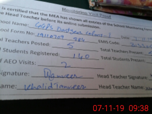 | Attendance Register | Head Teacher | MEA with School | Visit Proof |
