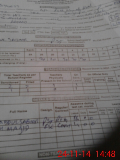 | Name: Mu**** Ma**** Designation: (School Headmaster's/Headmistress's) PST Phone/Cell Number: 03**** |
