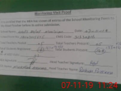 | Certified that this School was Inspected by the Undersigned MEA/DMO Today and the Information Stated Above is as Per Record. | |||||