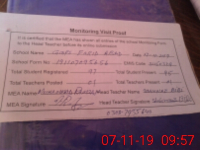 | Attendance Register | Head Teacher | MEA with School | Visit Proof |
