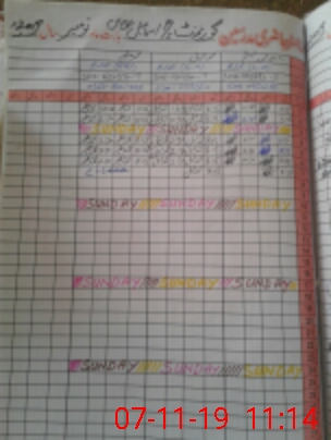 | CNIC | Full Name | Designation | R/C | Absence During Last Calender Month |